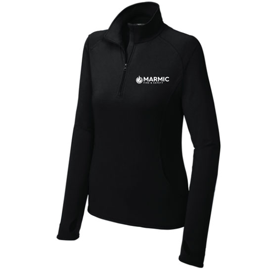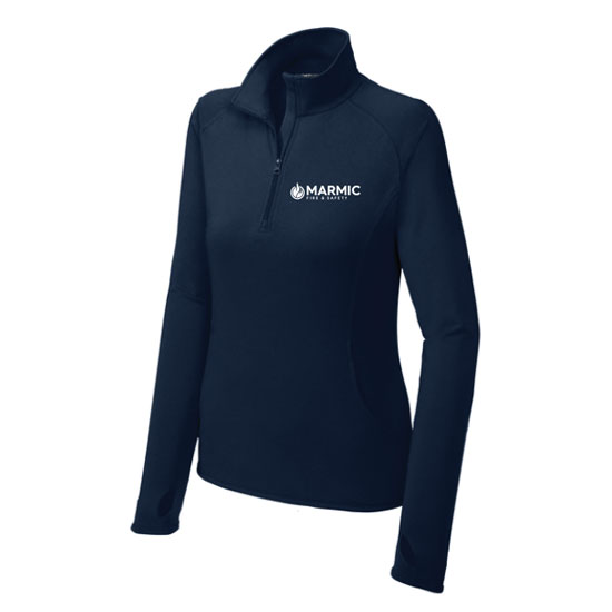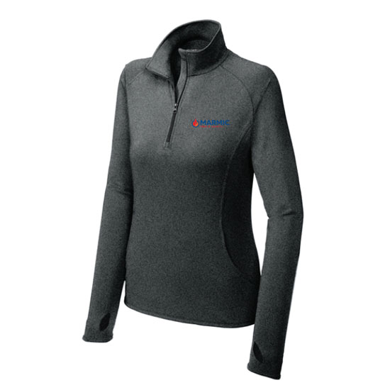 We’ll continue to offer this quarter zip as the lightweight version of our at work polo selections. This WORK STYLE option is extremely flexible for year-round use and likely to stand up in field conditions. This comes in basic colors and features an embroidered Marmic logo on the left chest.