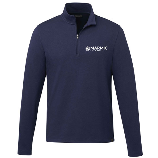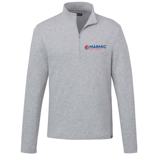 We’re adding this quarter zip as the lightweight version of our dress polo selections. This DRESS STYLE option is a lightweight blend likely best suited for the office or client visits. This comes in basic colors and features an embroidered Marmic logo on the left chest.